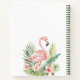 Un élégant arrière - plan blanc décoré d'un flamand rose et de fleurs tropicales et de feuillage. Personnalisez et ajoutez un nom et vos initiales monographiques.
