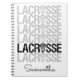 Des lettres en gras épellent le mot "LACROSSE" avec le mot "O" remplacé par un panier. Le design un peu déprimé fait un grand cadeau personnalisé pour un joueur, un entraîneur, une équipe ou un fan. Disponible en rouge, orange, jaune, violet, vert, bleu, gris, noir, vert forêt, marine, marron, orange brûlé, or et bleu poudreux. Produits correspondants disponibles.