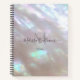 This elegant luxury notebook features an iridescent mother-of-pear design and a monogram and an elegant handwritten script combined with a stylish modern font.