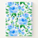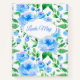 Motif coloré vif de fleurs d'aquarelle bleue et feuilles verts. Design floral filin. Design d'été féminin. Personnalisez en changeant le texte. Cliquez sur personnaliser pour ajouter votre propre touche.