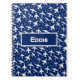 carnet bleu cool imprimé avec un motif d'avion blanc. Un bloc central bleu et blanc est l'endroit où vous ajoutez votre propre nom ou du texte libre. Cliquez simplement sur PERSONNALISER.
