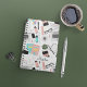 Graphiques de bureau modernes et adorables qui comprennent : tasse à café, ordinateur portable, tablette, housse de tablette, stylo, marqueurs, crayons, bloc-notes, échantillons de couleurs, lunettes, smartphone, trombones, règle et une plante. De manière unique et personnalisable avec un nom et une initiale. Conçu spécifiquement pour les bourreaux de travail qui restent connectés et occupés. Utilisez simplement le modèle à droite pour votre commodité.