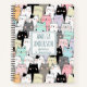 Un cahier de notes au motif de chats dessinés à la main avec des couleurs pastel kawaii. Personnalisez-le avec un nom et un texte personnalisé pour en faire un cadeau amusant pour tous les amoureux des chats.