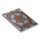 Bloc de courtepointe en motif "château" marron et bleu. Le "château" central est en forme d'étoile marron, entouré par le "mur 6 côtés" avec les "tours de guet" s'étendant du milieu des murs.