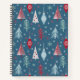 Motif de Noël d'hiver. Rouge stylisé, arbres de Noël verts, boules de Noël sur un arrière - plan bleu.