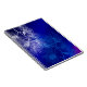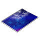 L'art des vacances d'hiver avec un élégant motif de pinèdes et pinecones en bleu et blanc sur un arrière - plan glacé de blues et de violet.