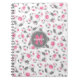 Ce mignon carnet en spirale sur le football pour les filles dispose d'un motif de balles de football de taille variée tournées de toutes parts - les panneaux noirs sur les boules de football ont été recolorés rose et gris - personnaliser avec le nom du joueur de football et le monogramme ou numéro de maillot - par katz_d_zynes