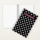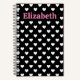 Classique, petits coeurs blancs sur un arrière - plan noir créent un motif simple pour exprimer l'amour à tout moment ! Montré ici sur un carnet en spirale avec plusieurs styles de papier disponibles. Vous pouvez ajuster la taille du motif de la façon que vous préférez et modifier la couleur de l'arrière - plan noir si vous le souhaitez de part et d'autre. Personnalisez-le avec un nom ou un texte.