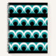 Geometric pattern illustration with stripes, circles and round shapes in turquoise, black and white colors