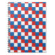 Carnet Spiral élégant et unique avec motif rouge blanc et bleu à damiers.