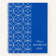 Elégant carnet bleu foncé avec un motif vectoriel blanc avec un nom personnalisable et l'année sur la couverture. Parfait pour le journalisme, l'école, la planification, ou comme un cadeau personnalisé réfléchi.