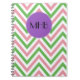 Carnet Motif Zigzag, Chevron, Rose, Vert, Monogramme