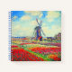 Carnet avec la peinture de la fleur et du moulin de Claude Monet. De beaux champs colorés de tulipes rouges, roses et jaunes à côté d'un moulin et d'une maison en Hollande. Un grand cadeau Monet pour les amateurs d'impressionnisme et d'art français.