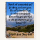 Ce carnet chrétien personnalisable montre un chemin de terre qui regarde en bas de la vallée et des nuages sur les montagnes lointaines sous les mots personnalisables du verset biblique de Josué 1:9 : "Ne vous ai-je pas commandé? Soyez forts et courageux. Ne soyez pas terrifiés et ne soyez pas submergés. Parce que le Seigneur, votre Dieu, est avec vous où que vous alliez." Ce serait un grand cadeau chrétien pour une confirmation ou un baptême puisqu'il est facile d'ajouter le nom de votre parrain pour le personnaliser comme vous voulez.