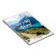 Ce design présente un étonnant lac dans des montagnes escarpées avec l'expression "Allons-y Randonnée !"