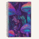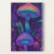 A vibrant and intricate design features glowing, mystical fungi rendered in an iridescent neon palette of violet, teal, magenta, and bright blue. The psychedelic mushrooms are surrounded by delicate, ethereal flowers and foliage, creating a truly whimsical and enchanting forest scene.