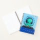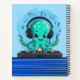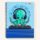 carnet spiral "Music Boy" avec DJ boy Octopus souriant avec casque faisant de la musique sur table à plateau avec textes et notes de musique flottant ci-dessus.