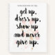Ne jamais renoncer à la typographie - Un beau planificateur motivationnel avec un arrière - plan de peinture aquarelle douce dans des tons élégants de rose et beige. Le message : "Peu importe ce que vous ressentez - levez-vous, habillez-vous, montez et n'abandonnez jamais." Réveillez-vous inspiré, profitez de la journée avec ce livre de notes sensationnel. Ne manquez jamais vos événements importants et continuez à sourire avec ce message de coeur senti.