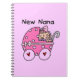 Un design adorable avec une petite fille dans un chariot rose sur les boîtes de Nana, carreaux, ornements, carnets, tasses, cartes, autocollants, sacs fourre-tout, porte - clés, magnets et autres vêtements et cadeaux New Nana !