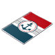 Design nautique avec décoration d'ancre en forme ronde sur bleu, rouge, gris et blanc rayé arrière - plan