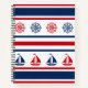 Design nautique avec voilier et décoration boussole sur rouge, bleu et blanc rayé arrière - plan