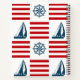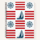 Design nautique avec voilier et décoration boussole sur arrière - plan rayé rouge et blanc