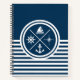 Design à thème nautique avec symboles nautiques (ancre, voilier, voilier, boussole) décoration sur arrière - plan rayé blanc et bleu marine.