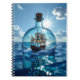 Un carnet à thème océan. Un bateau dans une bouteille flottant sur la mer. Une magnifique illustration de l'air pour ceux qui aiment le thème nautique.