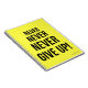 . : Si vous connaissez quelqu'un qui a besoin d'un petit rappel pour persévérer ou croire en lui-même, ce carnet avec la citation de Winston Churchill "ne jamais renoncer" est peut-être juste la bonne chose. La police est audacieuse et grandit avec chaque mot ! Disponible aussi sur les produits de coordination !
