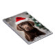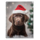 Joli chiot du Labrador au chocolat portant un chapeau de Père Noël.