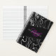 Fourniture d'école de bureau à domicile unique pour elle. Personnalisez avec l'initiale et le nom rose personnalisés. Noir, gris et blanc damascus design abstrait marbre liquéfié tourbillon et points motif. damascus, noir, gris, vintage, rétro, marbre, tourbillons, abstrait, motif, texture, décoratif, antique, victorien, baroque, orné, rococo, luxe, style, gris, blanc, noir et blanc