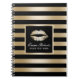 Carnet Noir de luxe de lèvres modernes d'or et rayures