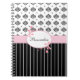 Un carnet tendance avec un motif damassé noir et blanc chic sur le dessus et des rayures sobres sur le fond, divisé par un cadre floral rose ceinturé. Personnalisez en ajoutant votre nom. Parfait cadeau pour la femme chic et branchée qui aime les rayures et un damas motif damassé.