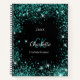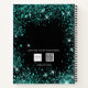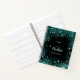 Arrière - plan noir, texte blanc. Décoré avec de la poussière de parties scintillant turquoise et verte de mer. Personnalisez et ajoutez une année, un prénom, des initiales monographiques et un nom complet.