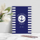 Carnet Spiral avec ancre nautique bleu marine et blanc rayé motif et nom de famille personnalisé dans le centre.
