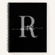 Cahier spiralé moderne, simple et élégant avec monogramme initial noir et gris du prénom féminin. Ce design minimaliste de couleur unie présente votre prénom dans une jolie typographie à queue calligraphiée (ou calligraphie), modèle de monogramme initial, facile à personnaliser. Cadeau personnalisé idéal et féminin pour une fête d'anniversaire, une pendaison de crémaillère, un mariage, un anniversaire pour 16 ans, une fête de fiançailles, une baby shower et pour quiconque aime le style minimaliste élégant.