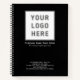 Carnet noir simple pour votre entreprise, entreprise ou projets, avec logo et informations sur votre entreprise sur le devant. Le dos a une version plus petite du même logo en bas. (Vous n'avez qu'à télécharger un fichier image logo.) Personnalisez avec votre nom d'entreprise, ligne de balise ou slogan, adresse, numéros de téléphone, adresses e-mail, site Web et URL des médias sociaux. Modèle propre, direct, adapté aux entreprises, aux entreprises et aux organisations grandes et petites.