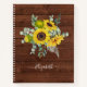 Carnet Nom du monogramme Fleur de soleil jaune bois rusti