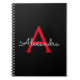 Noir et Rouge Simple Script Monogramme Nom Carnet Spiral Planificateur. Cela rend le cadeau parfait pour 16 ans, mariage, douche nuptiale, anniversaire, baby shower ou bachelorette pour quelqu'un qui aime le luxe glam et les styles chic.