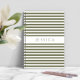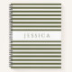 Carnet en spirale avec un nom personnalisé imprimé sur un minimaliste motif rayé vert olive et blanc.