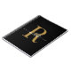 Cahier à spirale moderne, simple et élégant avec monogramme initial en noir et or. Ce design minimaliste de couleur unie présente votre prénom dans une jolie typographie à lettres manuscrites avec des fioritures (ou calligraphie), modèle de monogramme initial, facile à personnaliser. Cadeau personnalisé idéal pour une fille pour une fête d'anniversaire, une pendaison de crémaillère, un mariage, un anniversaire pour les 16 ans, une fête de fiançailles, une baby shower et pour quiconque aime le style minimaliste chic.
