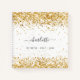 Un élégant arrière - plan blanc aux confettis dorés foncés. Personnalisez et ajoutez un nom, un titre. Le nom est écrit avec un style moderne lettré à la main avec des swashes. Pour que les swashes ne suppriment que le nom de l'échantillon, laissez les espaces ou émoticônes devant et après le nom.
