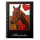 Carnet Nom monogramme Cheval avec coeur rouge et arc