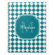 Un carnet monogramme de motif de carreaux à carreaux géométriques turquoise et blanc à la mode. Personnalisez ce design élégant en ajoutant votre nom et votre initiale monogrammée.