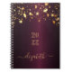 Un faux arrière - plan à l'allure métallique bordeaux foncé avec des faux étoiles dorées. Modèle pendant un an (à l'envers) Personnalisez et ajoutez un nom. Le nom est écrit avec un script doré et moderne en lettres manuscrites. Pour que les swashes ne suppriment que le nom de l'échantillon, laissez les espaces ou les émoticônes devant et après le nom