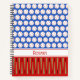 Des balles de baseball créent un motif à pois lumineux sur un arrière - plan bleu à l'avant et un arrière - plan rouge à l'arrière de ce carnet. Sur le devant, les chauves-souris de baseball sont également utilisées pour créer un autre motif, et il y a un groupe blanc pour vous de personnaliser avec un nom ou un autre texte.