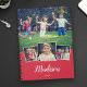 Cadeau personnalisé unique avec 4 photos préférées dans un cahier de collage photo moderne avec votre nom dans une écriture manuscrite tendance et l'année en dessous sur un fond rouge. Petit cadeau personnel doux pour les adolescents, les enfants ou les grands-parents !