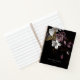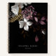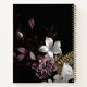 Ce carnet est décoré d'une belle décoration florale rose, blanche et or foncé et moody sur un arrière - plan noir.