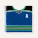 Ce design est un maillot de style hockey sur glace / crosse en bleu avec rayures et garnitures vertes et noires. carnet en spirale de 8,5 po x 8,5 po avec couvertures laminées, et un choix de style papier, y compris le carnet de croquis, gouverné, demi-régi, graphique. L'avant et l'arrière des carnets ont des motifs personnalisables de style jersey, vous permettant d'ajouter votre nom et numéro de choix à l'arrière, et un "A" ou "C" ou numéro à l'avant, utilisez les cases à droite de l'image pour modifier le texte. Vous pouvez également ajouter un logo ou votre propre texte à l'avant, il suffit de cliquer sur la PERSONNALISER. Ces carnets sont parfaits pour l'esquisse, la création de listes, la tenue de recettes, la conservation de vos statistiques sportives, et idéal comme retour aux cadeaux scolaires pour les élèves. Cadeaux de maillot de sport personnalisés uniques pour les amateurs de sport et les joueurs de votre vie!