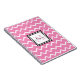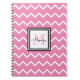 Carnet en spirale motif de chevron blanc et rose personnalisé avec un nom en noir et monogramme en couleur rose assortie.